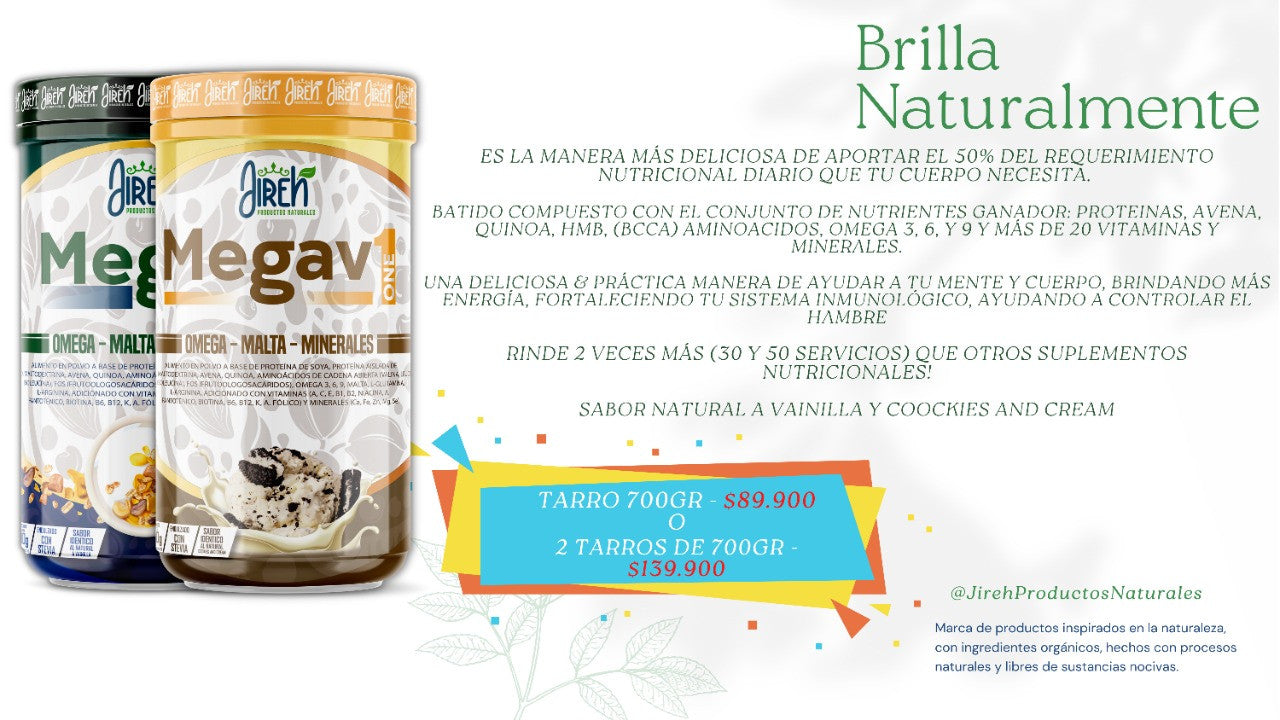 ES LA MANERA MÁS DELICIOSA DE APORTAR EL 50% DEL REQUERIMIENTO NUTRICIONAL DIARIO QUE TU CUERPO NECESITA. BATIDO COMPUESTO CON EL CONJUNTO DE NUTRIENTES GANADOR: PROTEINAS, AVENA, QUINOA, HMB, (BCCA) AMINOACIDOS, OMEGA 3, 6, Y 9 Y MÁS DE 20 VITAMINAS Y MINERALES. UNA DELICIOSA & PRÁCTICA MANERA DE AYUDAR A TU MENTE Y CUERPO, BRINDANDO MÁS ENERGÍA, FORTALECIENDO TU SISTEMA INMUNOLÓGICO, AYUDANDO A CONTROLAR EL HAMBRE RINDE 2 VECES MÁS (30 Y 50 SERVICIOS) QUE OTROS SUPLEMENTOS NUTRICIONALES! SABOR NATURAL A VAINILLA Y COOCKIES AND CREAM